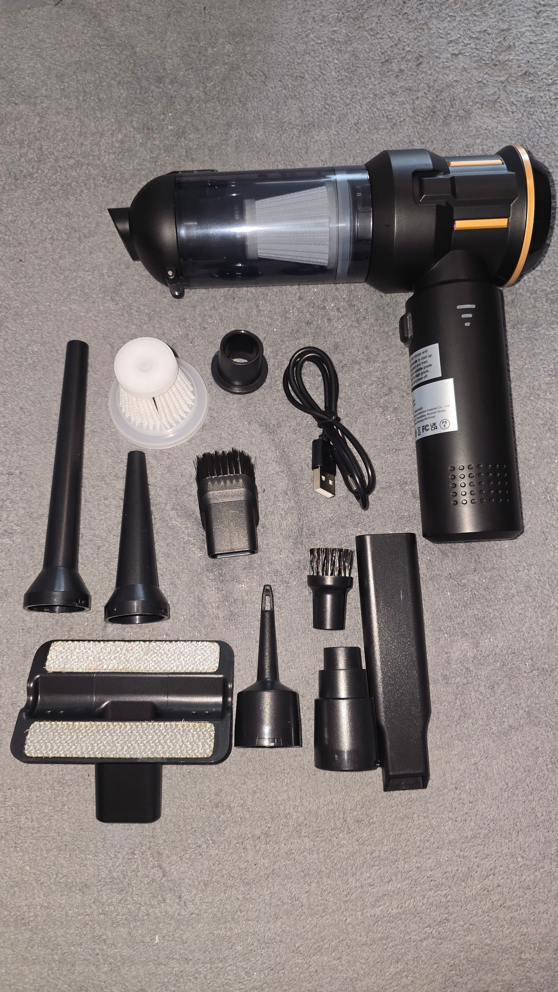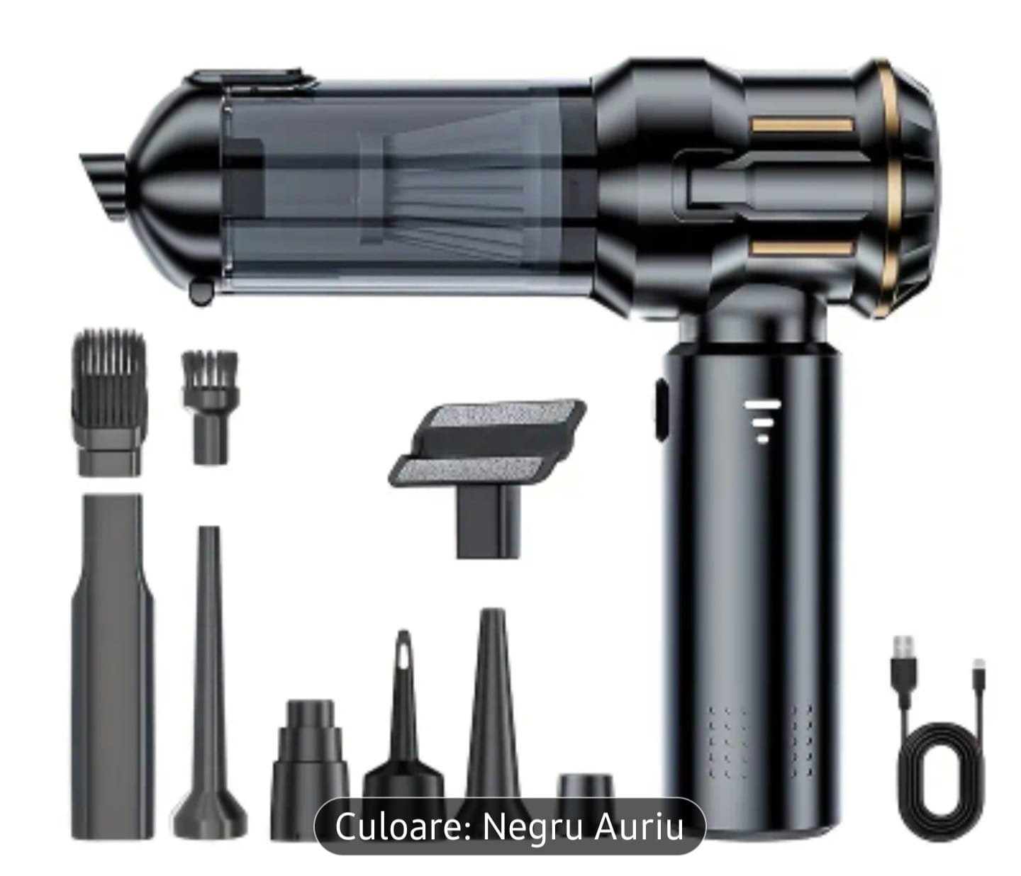 Aspirator Portabil, Aspirare și Suflare, USB Reîncărcabil, cu 12 Accesorii pentru Mașină, Casă și Tastatură